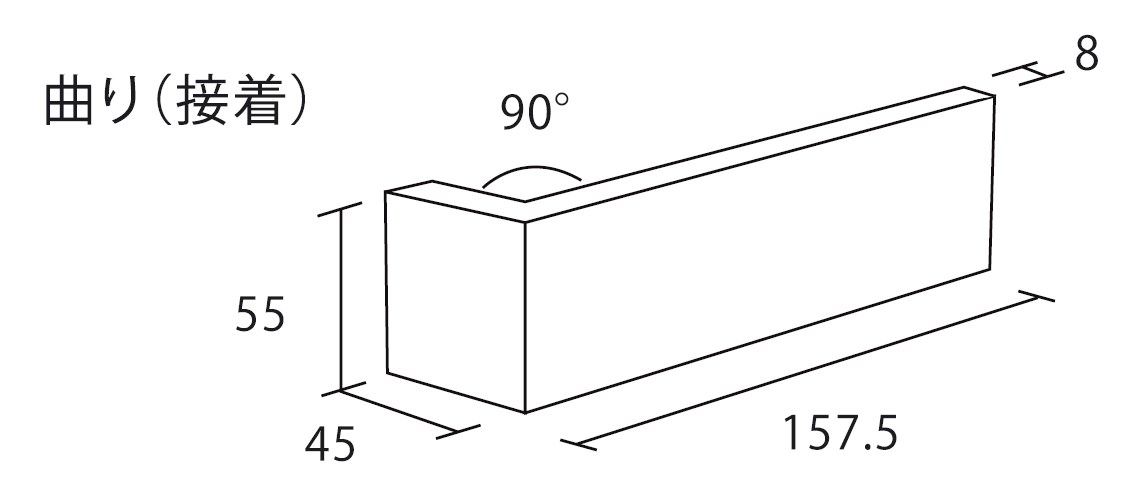 標準曲がり(接着) サイズ詳細:(157.5+45)×55mm 厚み:8mm |