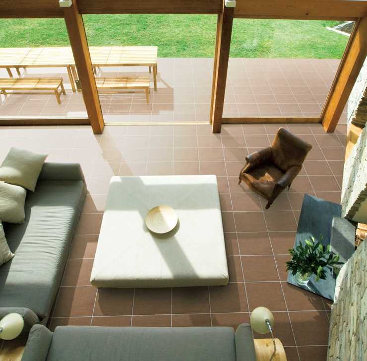 内部建材とのコーディネートも意識したライムストーン調の床タイルです。