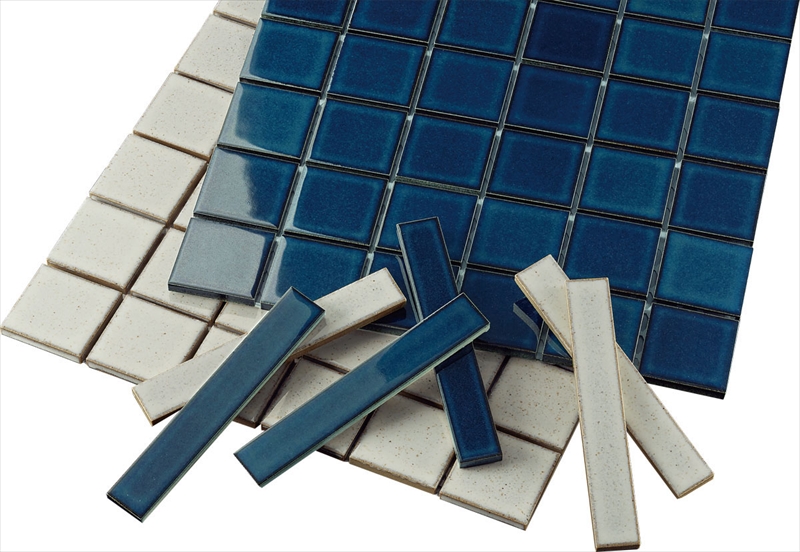 商品の留意点 ●本商品は形状によって目地寸法が異なります(100mm角・50mm角・150×25mm角ボーダー=3.0mm目地、25mm角=2.5mm目地)。 ●形状・寸法にバラツキがあります。 ●裏ネット張り品です。 ●窯変釉特有の色幅があります。 ●形状により釉薬の溜まり方が変わるため見え方が異なります。 施工上のご注意 ●中竹出丸、中竹三角出は施工する前に、断面図を参考に下地出隅部を5mm程度面取りしてください。