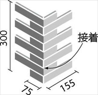 90°曲ネット張り(接着)(馬踏目地)(接着) |