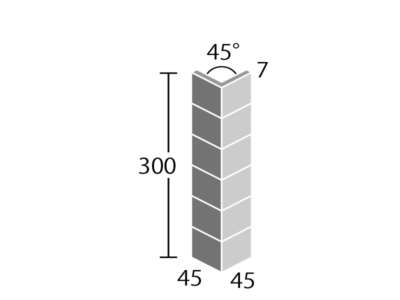 サイズ補足 50mm角90°曲 シート目地共寸法 : (50+50)×300mm 表紙貼り