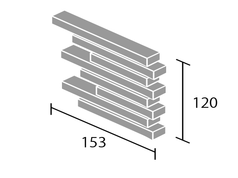 ボーダー出隅ユニット(左) 長辺 = 150・135・110・95・80mm 短辺 = 12mm 厚み = 15・19mm シート目地共寸法 : 120×153mm 裏ドット貼り |