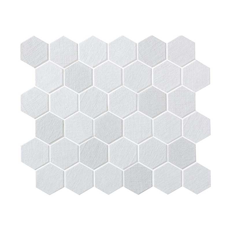 布目のレリーフを持つ六角形のタイルです。 <商品の留意点> ●裏ネット張り品です。 ●1シートは6列×6段で36粒です。
