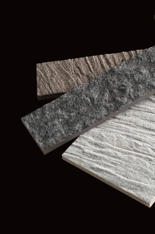 グラニットを彷彿させる格調高い素材感が、高級な佇まいを演出します。 <商品の留意点> ●接着剤張り専用商品です。 ●表面が凹凸になっていますので、厚さにバラツキがあり、記載値は最大値です。 ●目地幅は縦8mm、横12mmが推奨です。 ●90°屏風曲は兼用となっています。 ●目地施工については、イナメジアルファシリーズをご採用いただければ、タイルの趣が一層引き立ちます。 ●標準価格およびあたり枚数にロスは含まれていません。 ●キッチンバック等では使用できません。 <施工上のご注意> ●接着剤は「はるかべ工法専用接着剤」をご使用ください。 ●90°曲(接着)および90°曲(300×160mm角)(接着)は3種類の形状を同梱しています。 上下の役物タイルで縦目地が通らないように施工してください。 ●表面が凹凸面のため塗り目地はできません。目地詰めする場合は、1本目地詰めをしてください。 ●モルタル施工はしないでください。 裏あし形状はあり状ではないので、剥離の原因となることがあります。 ●突きつけ目地施工はしないでください。 剥離や欠けの原因になります。 ●漏水等のトラブルを防ぐために、下地側での防水処理(防水紙・防水テープの取付け)を必ず行ってください。 ●タイルの縁や角に尖った部分があるため、強くぶつかるとけがをする可能性があります。