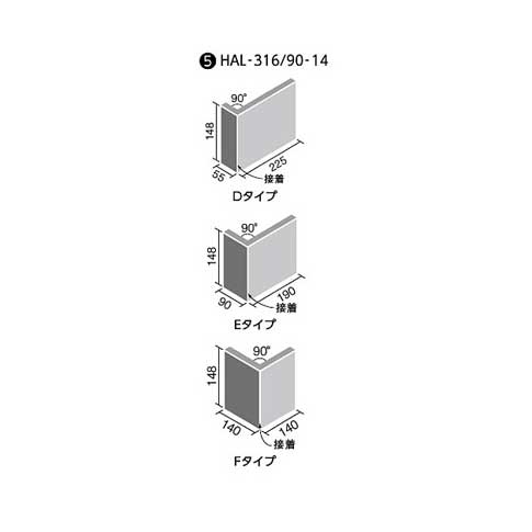 Dタイプ:(225+55)X148mm Eタイプ:(190+90)X148mm Fタイプ:(140+140)X148mm |