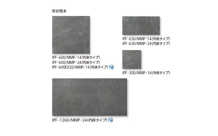適性表示? 屋内壁 : 屋内床 : 浴室床 : × 屋外壁 : × 屋外床 : 耐凍害適正 :