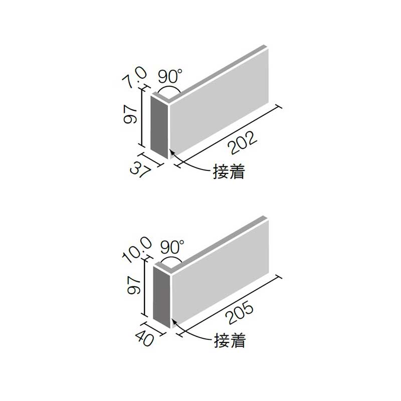 90°曲(接着) サイズ:(202+37)×97 暑さ7.0mm (205+40)×97 厚さ10.0mm |