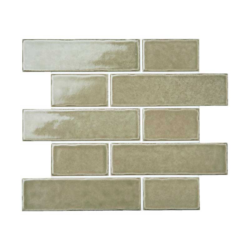 フランス貼りでシート加工した壁タイル。ソフトなカラーと釉薬のむら感がナチュラルなインテリアによく合います。