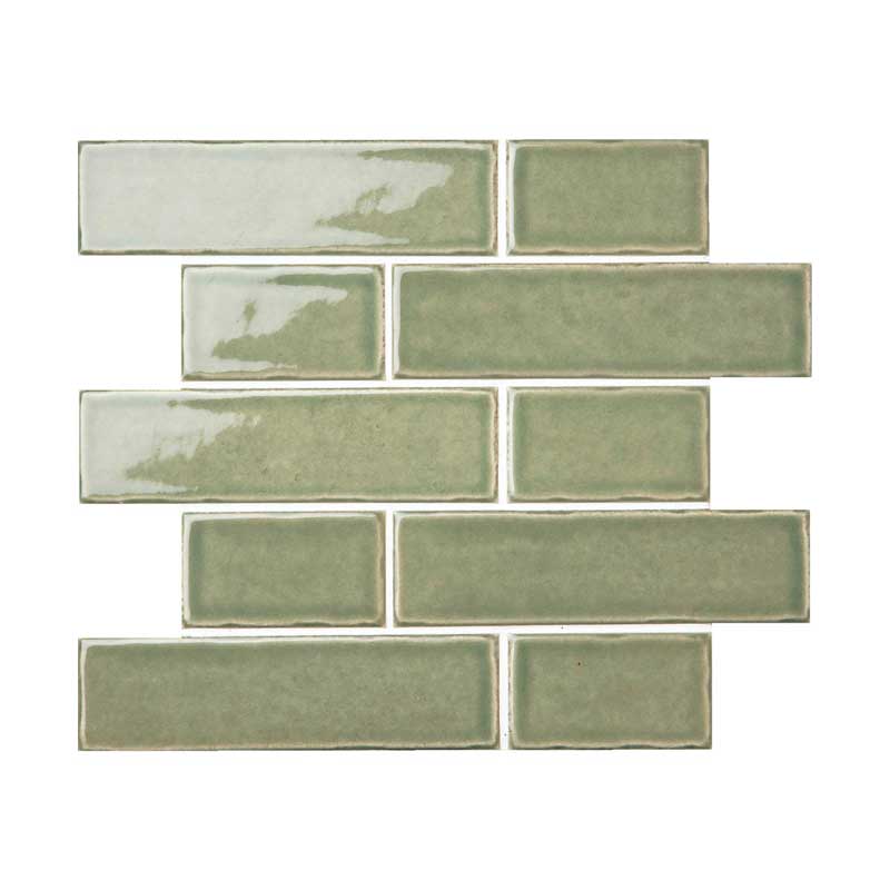 フランス貼りでシート加工した壁タイル。ソフトなカラーと釉薬のむら感がナチュラルなインテリアによく合います。
