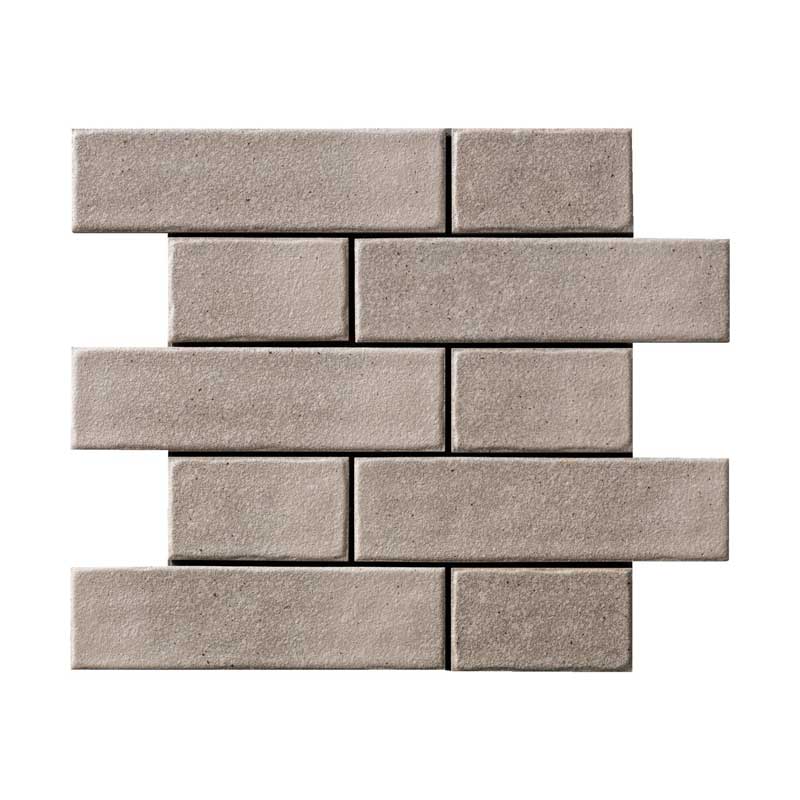 フランス貼りでシート加工した壁タイル。ソフトなカラーと釉薬のむら感がナチュラルなインテリアによく合います。