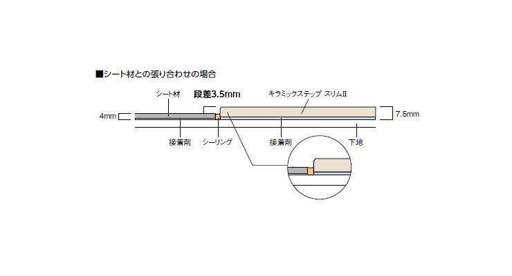 長尺シートとの張り合わせも可能な抗菌仕様の薄型ステップタイルです。リフォームにも対応可能です。