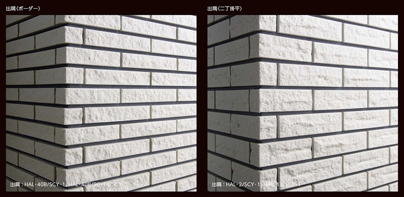 商品の留意点 ●接着剤張り、モルタル施工共用商品です。 ●二丁掛平・ボーダー・100mm角平は表面が凹凸になっていますので、厚さは13mmを中心にバラツキがあります。記載値は最大値です。 ●二丁掛平・二丁掛平[フラット面]・ボーダーの目地幅は縦8mm、横10mmが推奨です。100mm角平の目地幅は縦・横共に6mmが推奨です。 ●生産ロット単位、形状間、および1枚ごとなどに色合いが異なる場合があります。 ●標準価格およびあたり枚数にロスは含まれていません。 ●キッチンバック等では使用できません。 施工上のご注意 ●外装壁[はるかべ工法・モルタル張り共用]の共通注意事項(カタログ)をご覧ください。 ●接着剤は「はるかべ工法専用接着剤」をご使用ください。 ●黒目地をご使用の場合には目地残りによるタイルの汚れにご注意ください。目立たない場所でお試しください。 ●二丁掛平・ボーダー・100mm角平は表面がテッセラ面のため塗り目地はできません。目地詰めする場合は、1本目地詰めをしてください。 警告 ●はるかべ工法の場合、突きつけ目地施工はしないでください。剥離や欠けの原因になります。 ●モルタル施工の場合、突きつけ目地、空(から)目地施工はしないでください。剥離や欠けの原因になります。少なくともタイル長手方向の目地は必ず充填してください。 注意 ●はるかべ工法の場合、漏水等のトラブルを防ぐために、下地側での防水処理(防水紙・防水テープの取付け)を必ず行ってください。 ●タイルの縁や角に尖った部分があるため、強くぶつかるとけがをする可能性があります。