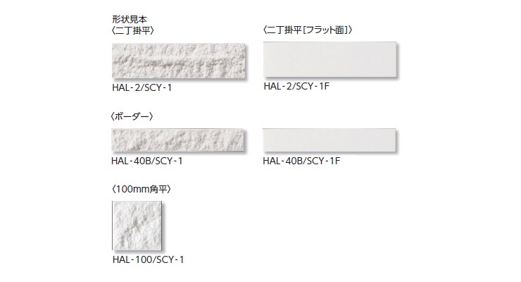 商品の留意点 ●接着剤張り、モルタル施工共用商品です。 ●二丁掛平・ボーダー・100mm角平は表面が凹凸になっていますので、厚さは13mmを中心にバラツキがあります。記載値は最大値です。 ●二丁掛平・二丁掛平[フラット面]・ボーダーの目地幅は縦8mm、横10mmが推奨です。100mm角平の目地幅は縦・横共に6mmが推奨です。 ●生産ロット単位、形状間、および1枚ごとなどに色合いが異なる場合があります。 ●標準価格およびあたり枚数にロスは含まれていません。 ●キッチンバック等では使用できません。 施工上のご注意 ●外装壁[はるかべ工法・モルタル張り共用]の共通注意事項(カタログ)をご覧ください。 ●接着剤は「はるかべ工法専用接着剤」をご使用ください。 ●黒目地をご使用の場合には目地残りによるタイルの汚れにご注意ください。目立たない場所でお試しください。 ●二丁掛平・ボーダー・100mm角平は表面がテッセラ面のため塗り目地はできません。目地詰めする場合は、1本目地詰めをしてください。 警告 ●はるかべ工法の場合、突きつけ目地施工はしないでください。剥離や欠けの原因になります。 ●モルタル施工の場合、突きつけ目地、空(から)目地施工はしないでください。剥離や欠けの原因になります。少なくともタイル長手方向の目地は必ず充填してください。 注意 ●はるかべ工法の場合、漏水等のトラブルを防ぐために、下地側での防水処理(防水紙・防水テープの取付け)を必ず行ってください。 ●タイルの縁や角に尖った部分があるため、強くぶつかるとけがをする可能性があります。