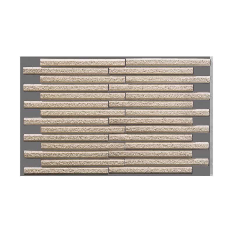 立体感ある細い本テッセラボーダータイル。 テッセラならではの力強い表情を見せます。 推奨工法:接着剤張り工法 <注意点> ●多少の寸法誤差がありますので、調整しながら施工願います。 ●接着剤張り専用商品の為、モルタル施工はできません。 ●JJユニット(裏面樹脂連結ユニット)商品です。 ●ユニットの目地幅は2.5?に設定してありますが、タイルの寸法公差によるバラつきがあります。 ●焼物特有の色幅があります。 ●目地の間から連結ユニットが見えます。 ●接着剤は連結樹脂の色に合わせて下さい。 ●テッセラ面の為に凸凹があり、厚さにバラつきがあります。 ※掲載している商品の画像や説明等は、メーカーによって異なりますのでご注意下さい。