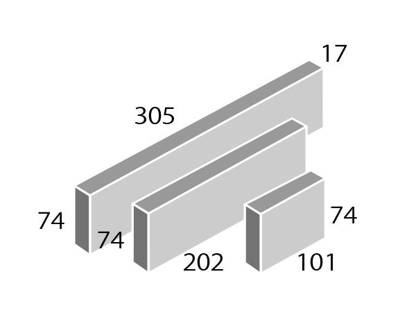 サイズ補足 ブリック乱尺 長辺 = 305・202・101mm