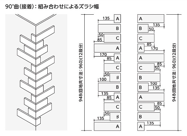 グラニットを彷彿させる格調高い素材感が、高級な佇まいを演出します。 <商品の留意点> ●接着剤張り専用商品です。 ●表面が凹凸になっていますので、厚さにバラツキがあり、記載値は最大値です。 ●目地幅は縦8mm、横12mmが推奨です。 ●90°屏風曲は兼用となっています。 ●目地施工については、イナメジアルファシリーズをご採用いただければ、タイルの趣が一層引き立ちます。 ●標準価格およびあたり枚数にロスは含まれていません。 ●キッチンバック等では使用できません。 <施工上のご注意> ●接着剤は「はるかべ工法専用接着剤」をご使用ください。 ●90°曲(接着)および90°曲(300×160mm角)(接着)は3種類の形状を同梱しています。 上下の役物タイルで縦目地が通らないように施工してください。 ●表面が凹凸面のため塗り目地はできません。目地詰めする場合は、1本目地詰めをしてください。 ●モルタル施工はしないでください。 裏あし形状はあり状ではないので、剥離の原因となることがあります。 ●突きつけ目地施工はしないでください。 剥離や欠けの原因になります。 ●漏水等のトラブルを防ぐために、下地側での防水処理(防水紙・防水テープの取付け)を必ず行ってください。 ●タイルの縁や角に尖った部分があるため、強くぶつかるとけがをする可能性があります。