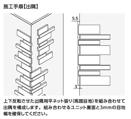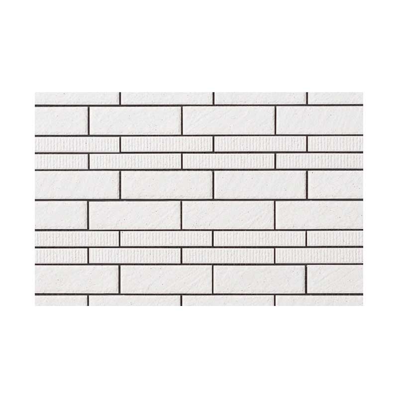 形状と面状の組み合わせによる新しいデザインが、幅広い住宅スタイルに対応します。 商品の留意点 ●接着剤張り専用商品です。 ●細目地の間から連結材が見えます。 タイルの連結材の色はグレーにしていますので、接着剤はG3色をご使用ください。 ●細目地の間から接着剤のクシ目が見えることがあります。 ●ユニット品の設定目地幅は縦・横とも3mmですが、タイル寸法公差等によるバラツキがあります。 ●セラヴィオW・Sとはユニット寸法が異なります。 張り合わせる場合は見切り材等をご使用ください。 ●90°屏風曲(接着)は石面状となっています。 ●縦平ネット張りは開口部などでの調整用として切断してご使用ください。 ●標準価格およびあたり枚数にロスは含まれていません。 ●キッチンバック等では使用できません。 施工上のご注意 ●接着剤は「はるかべ工法専用接着剤」をご使用ください。 ●仕上がりが下地精度の影響を受けやすいため、下地調整を行ってください。 ●モルタル施工はしないでください。 裏あし形状はあり状ではないので、剥離の原因となることがあります。 ●突きつけ目地施工はしないでください。 剥離や欠けの原因になります。 ●漏水等のトラブルを防ぐために、下地側での防水処理(防水紙・防水テープの取付け)を必ず行ってください。 ●タイルの縁や角に尖った部分があるため、強くぶつかるとけがをする可能性があります。