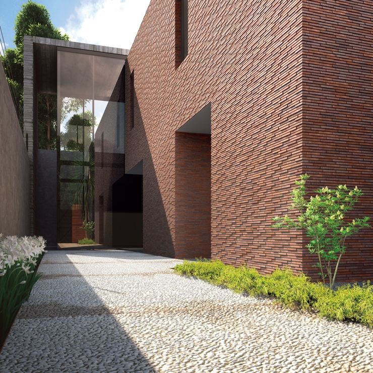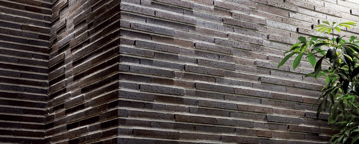 焼きもので彩られた堂々とした空間、土ものの世界を感じさせてくれるタイルです。