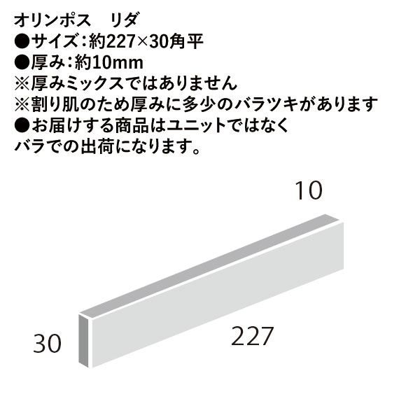 ブランドタイル:外壁タイル オリンポス リダ 227×30角平 厚さ = 10mm 5(41721KWA)