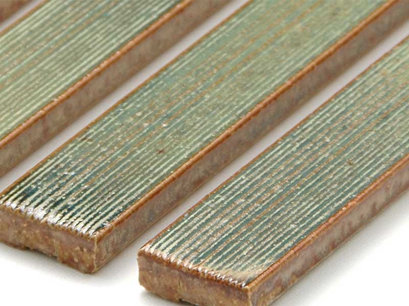 【壁面タイル ブラウニー 227×30mm角 ボーダー平 筋面 グリーン系 2】