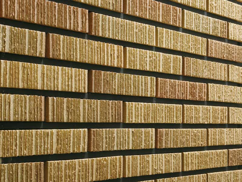 スクラッチ面が大胆に施された面状は、立体感と存在感を同時に引き上げ、壁面の魅力をより印象づけます。 <注意点> ●土もの特有の大きな色幅があります。 還元色については虹彩現象が出ることがあります。 ●接着剤張り工法専用製品です。 ●塗り目地施工はできません。 ●突きつけ施工は避けてください。 ●接着剤張工法専用のためモルタル施工はできません。