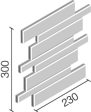 異形状平ネット張り(馬踏目地) サイズ:226×(24・45)mm 厚み:9・11mm 目地共シート寸法:230×300mm |