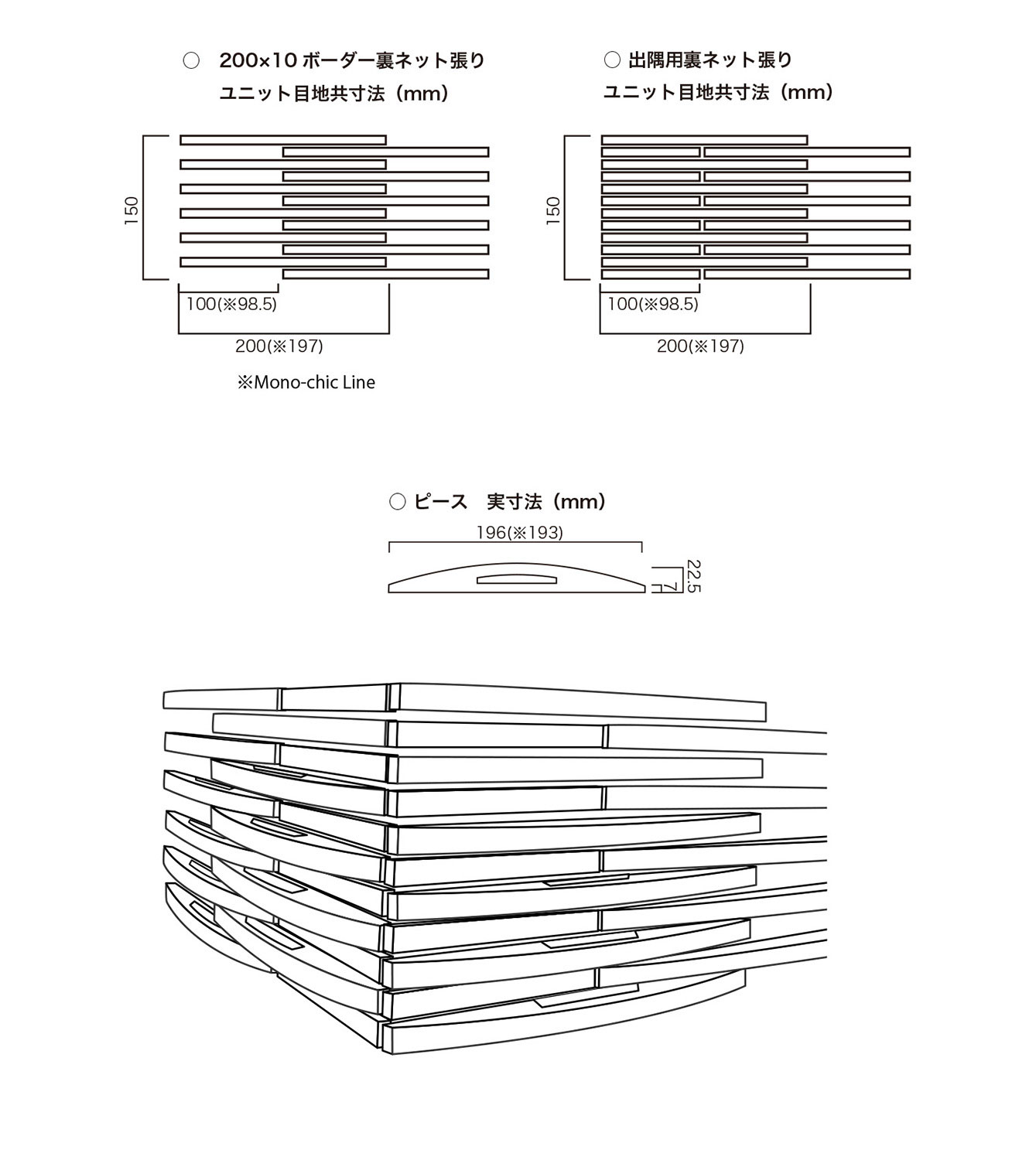 197×10×7〜22mmのタイルがネット張りしています。 |