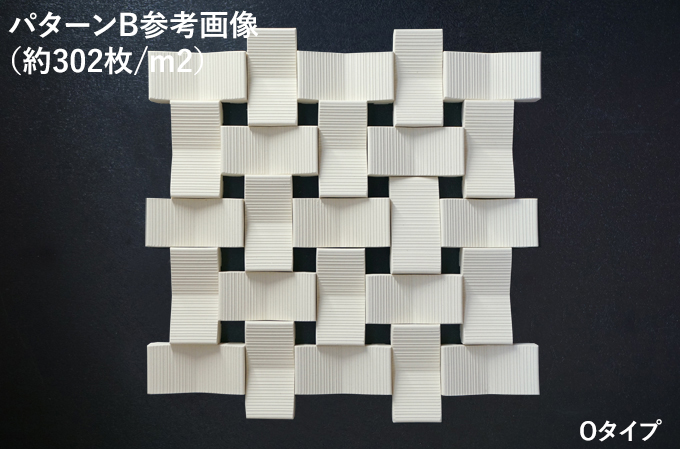 並べ方によっても印象が変わります。 ■施工パターン別 必要枚数/m2 ・パターンAで施工した場合:約352枚/m2 ・パターンBで施工した場合:約302枚/m2 ・パターンCで施工した場合:約352枚/m2 ※1m2当たりの使用数は参考です。製品と製品の距離により使用数は異なります。 <注意点> ●多少の寸法誤差がありますので、調整しながら施工願います。 ●タイル寸法のバラツキを調整する程度の目地幅をお取り下さい。 ●やきもの特有の色幅・形状差・寸法差があります。 ●タイル用弾性接着剤を使用して下さい。 ●製品は単品でユニットではありません。 ●白土・梨肌土は無釉のため、施工時の汚れ等にはご注意下さい。 【受注生産品】 少量の在庫がある場合もございますが、基本的には受注生産品となります。 納期は1か月半〜2か月程度かかります。