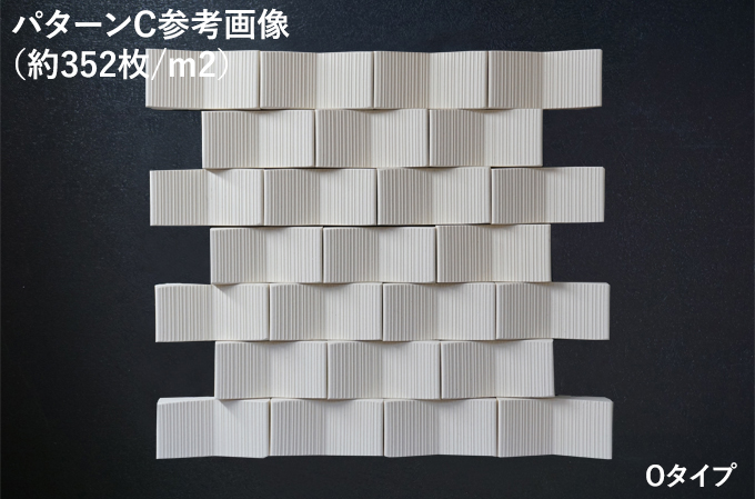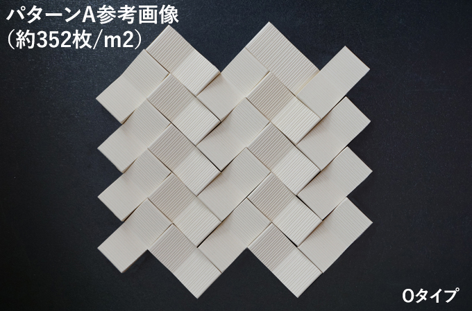 並べ方によっても印象が変わります。 ■施工パターン別 必要枚数/m2 ・パターンAで施工した場合:約352枚/m2 ・パターンBで施工した場合:約302枚/m2 ・パターンCで施工した場合:約352枚/m2 ※1m2当たりの使用数は参考です。製品と製品の距離により使用数は異なります。 <注意点> ●多少の寸法誤差がありますので、調整しながら施工願います。 ●タイル寸法のバラツキを調整する程度の目地幅をお取り下さい。 ●やきもの特有の色幅・形状差・寸法差があります。 ●タイル用弾性接着剤を使用して下さい。 ●製品は単品でユニットではありません。 ●白土・梨肌土は無釉のため、施工時の汚れ等にはご注意下さい。 【受注生産品】 少量の在庫がある場合もございますが、基本的には受注生産品となります。 納期は1か月半〜2か月程度かかります。