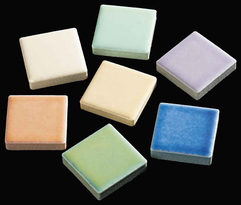 多色の釉薬を掛け合わせた明るいパステル調モザイクタイルです。