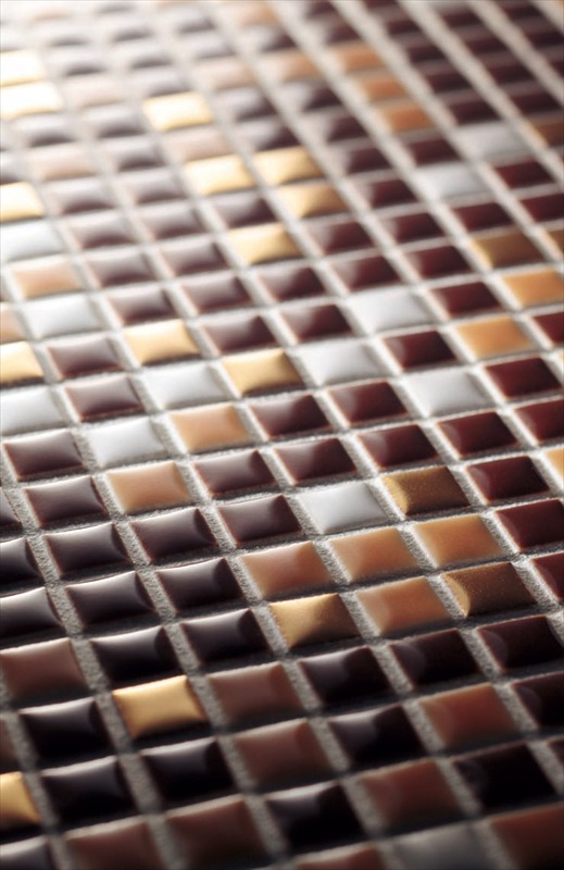 10mm角の小さな施釉モザイクです。曲面にも使え、さまざまなアイデアも実現できます。
