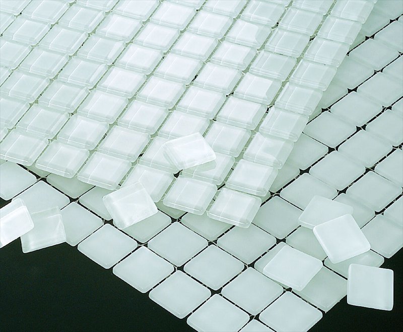 クリア(透明)とフロスト(つや消し)の2面状を揃えたガラスモザイクです。