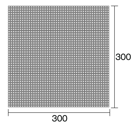 裏ネット貼り 目地共:300×300mm(45粒×45粒) 1.7mm目地 タイルサイズ:5mm角 |