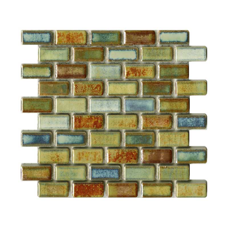 商品名 : モザイクタイル ラスティカ チロル 15mm二丁平 ランニングボンドパターン張り 紙貼り 色:RB/PB-07