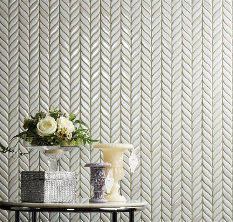 ブライトとラスターのふたつの質感が輝く葉っぱ形状のガラスモザイク形状です。