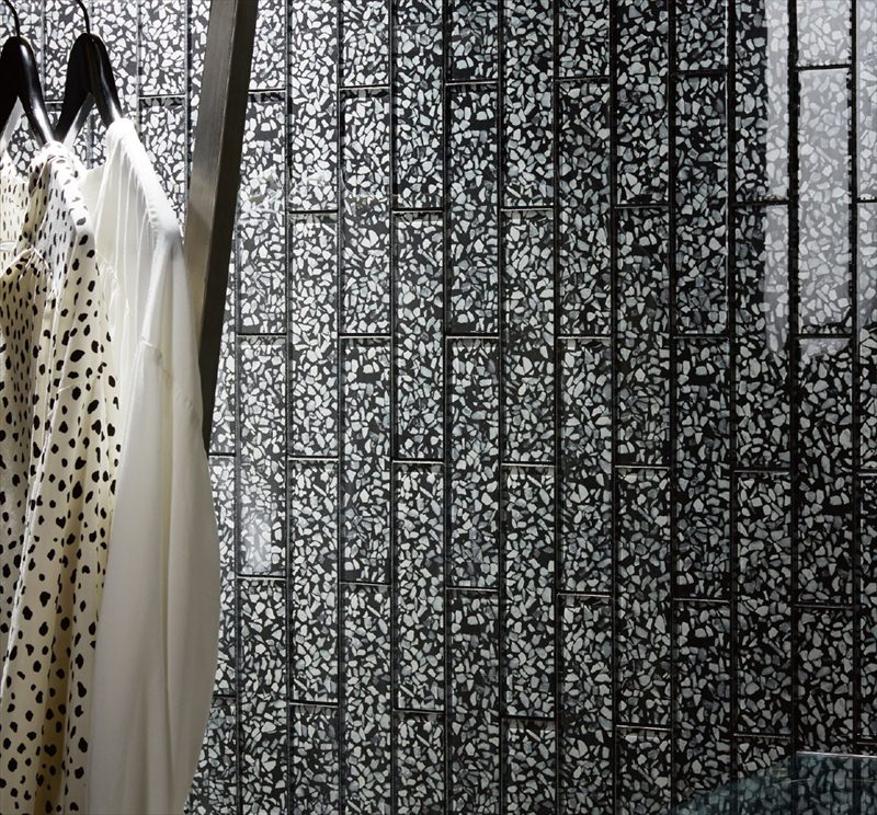トレンドデザインのテラゾを表現したガラスが、シックな空間を彩ります。