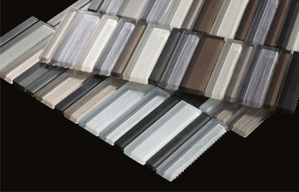表情と形状が異なるガラスモザイクをミックスしました。モノトーン系はシャープな印象に、ブラウン系はシックな印象に仕上がります。
