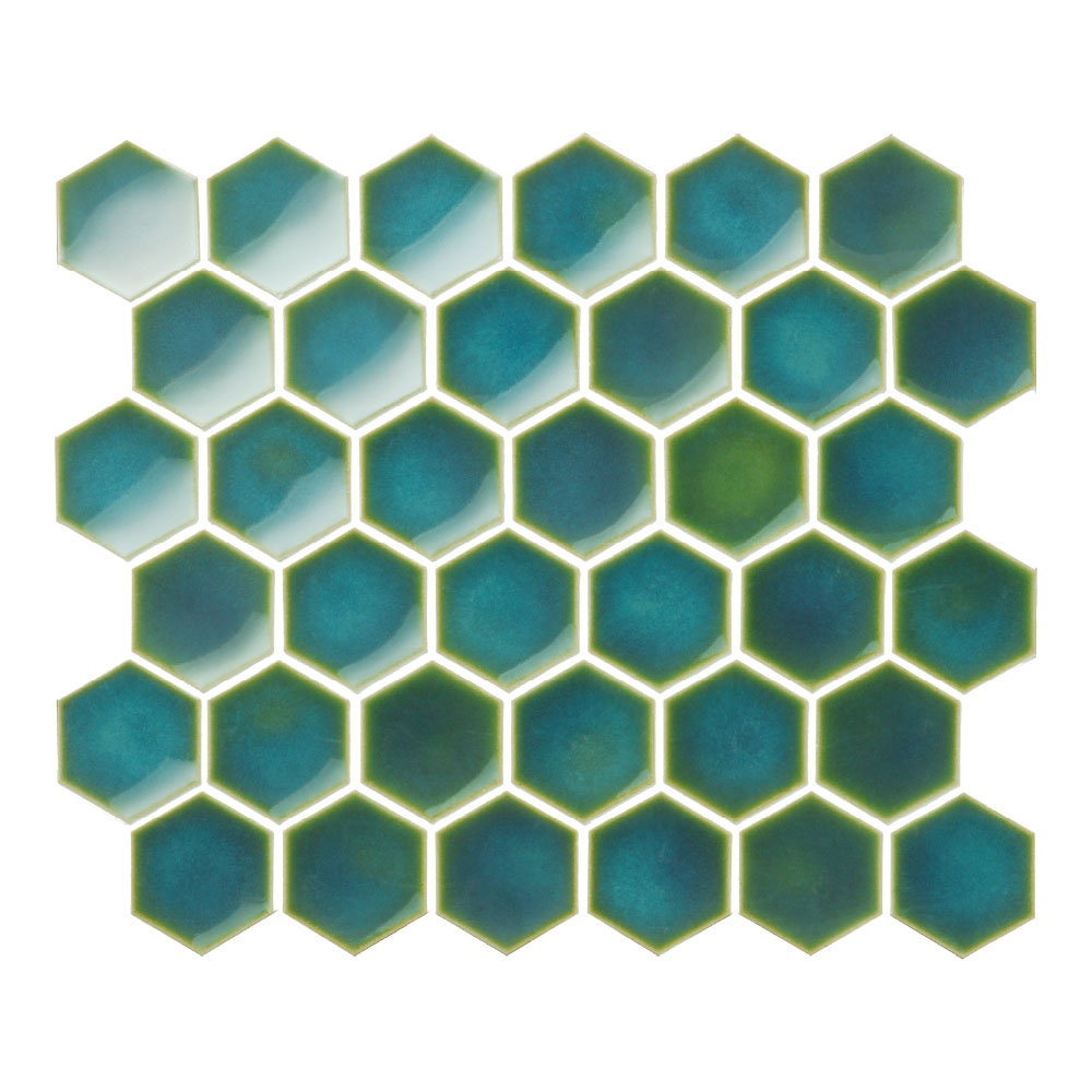 凹面の六角形が光と釉薬の美しい陰影をつくります。 ■注意事項■ ●6×6粒/シート ●ユニットを持ち上げる際に、ネットからタイルが剥がれる恐れがあります。 ●製品の特性上、形状・厚みにバラつきがあります。 ●酸性洗剤やクレンザーなどの研磨剤は使用しないでください。