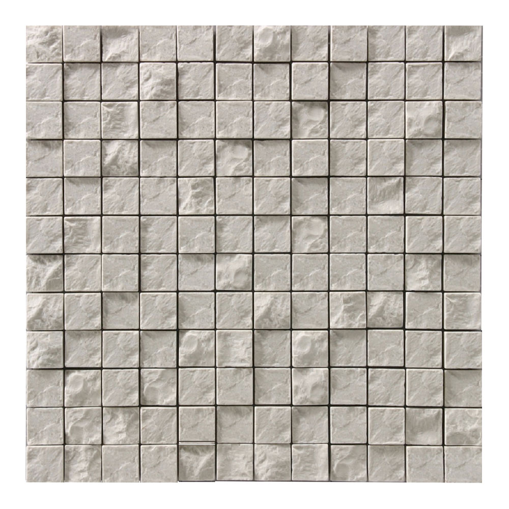 起伏の大きいハツリ面タイルをさらに厚みを変えて組み合わせて独特の重厚感と高級感を演出します。 ■注意事項■ ●12×12粒/シート