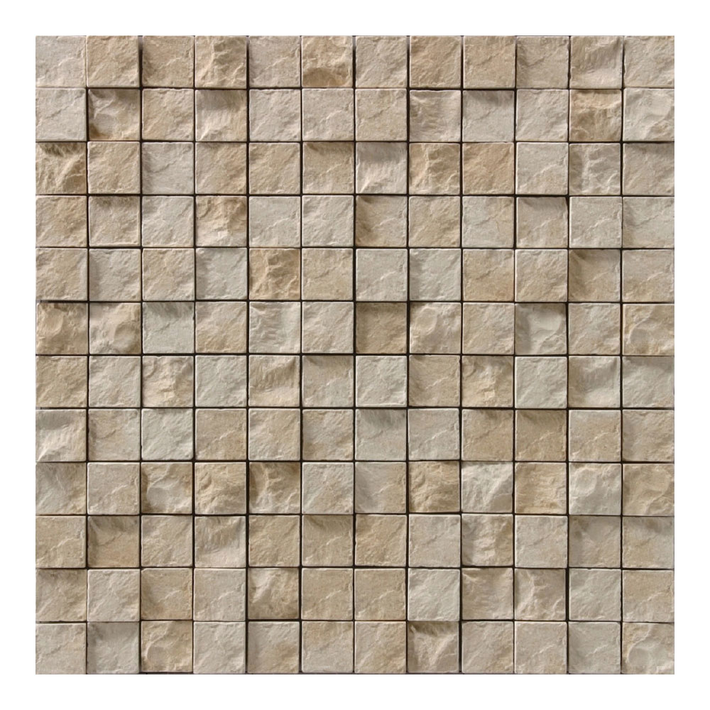 起伏の大きいハツリ面タイルをさらに厚みを変えて組み合わせて独特の重厚感と高級感を演出します。 ■注意事項■ ●12×12粒/シート