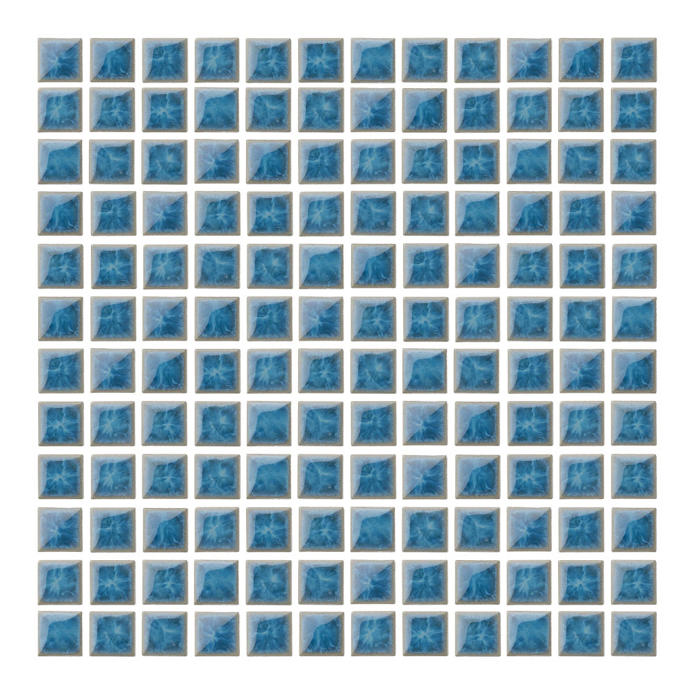 窯変釉による透明感をまとったブルーとグリーンの美しいカラーバリエーション。 ■注意事項■ ●12×12粒/シート ●発注後のシート加工となります。納期はご確認ください。 ●特注パターン張りのユニット加工も対応いたします。 ●45mm角は受注対応可能ですので、お問い合わせください。