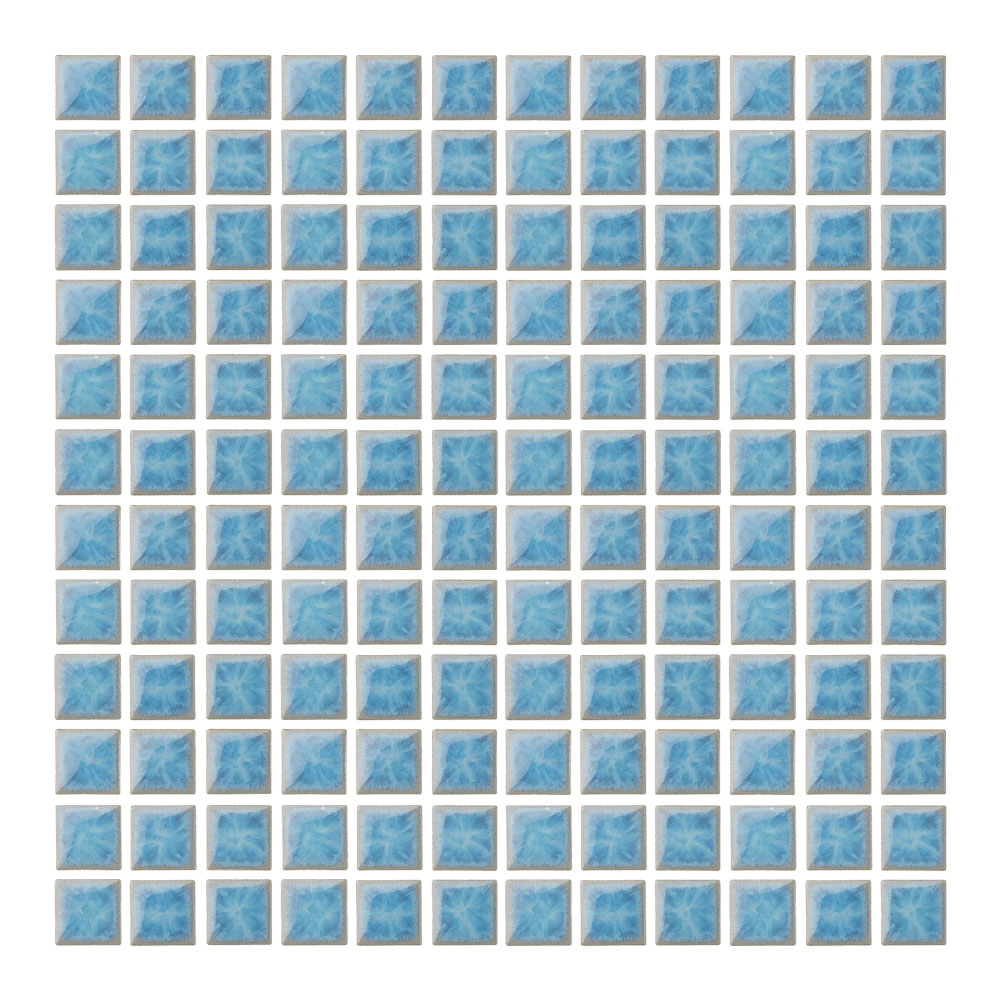 窯変釉による透明感をまとったブルーとグリーンの美しいカラーバリエーション。 ■注意事項■ ●12×12粒/シート ●発注後のシート加工となります。納期はご確認ください。 ●特注パターン張りのユニット加工も対応いたします。 ●45mm角は受注対応可能ですので、お問い合わせください。