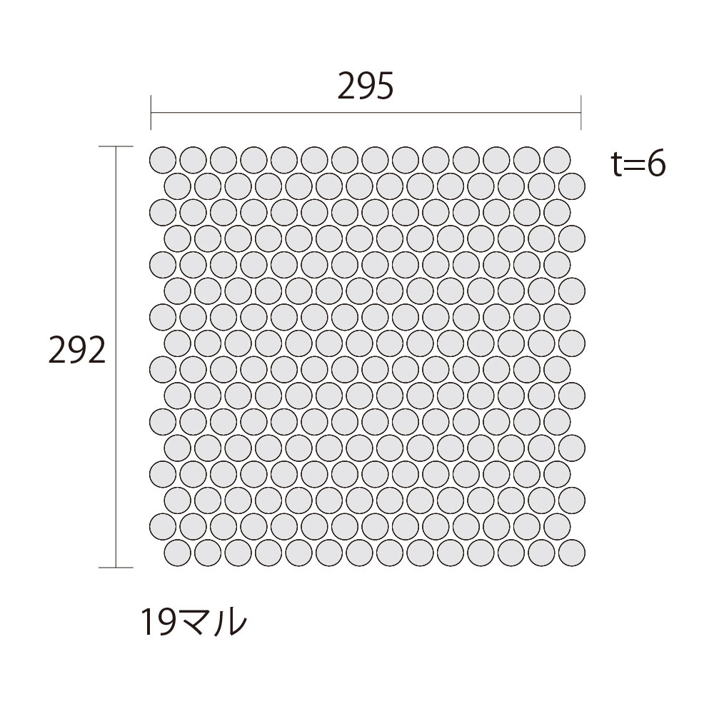 幅広い形状とカラーで多彩な組み合わせが可能です。 ■注意事項■ ●14×16粒/シート ●19マルは接着剤張り専用タイルです。モルタル施工はできません。