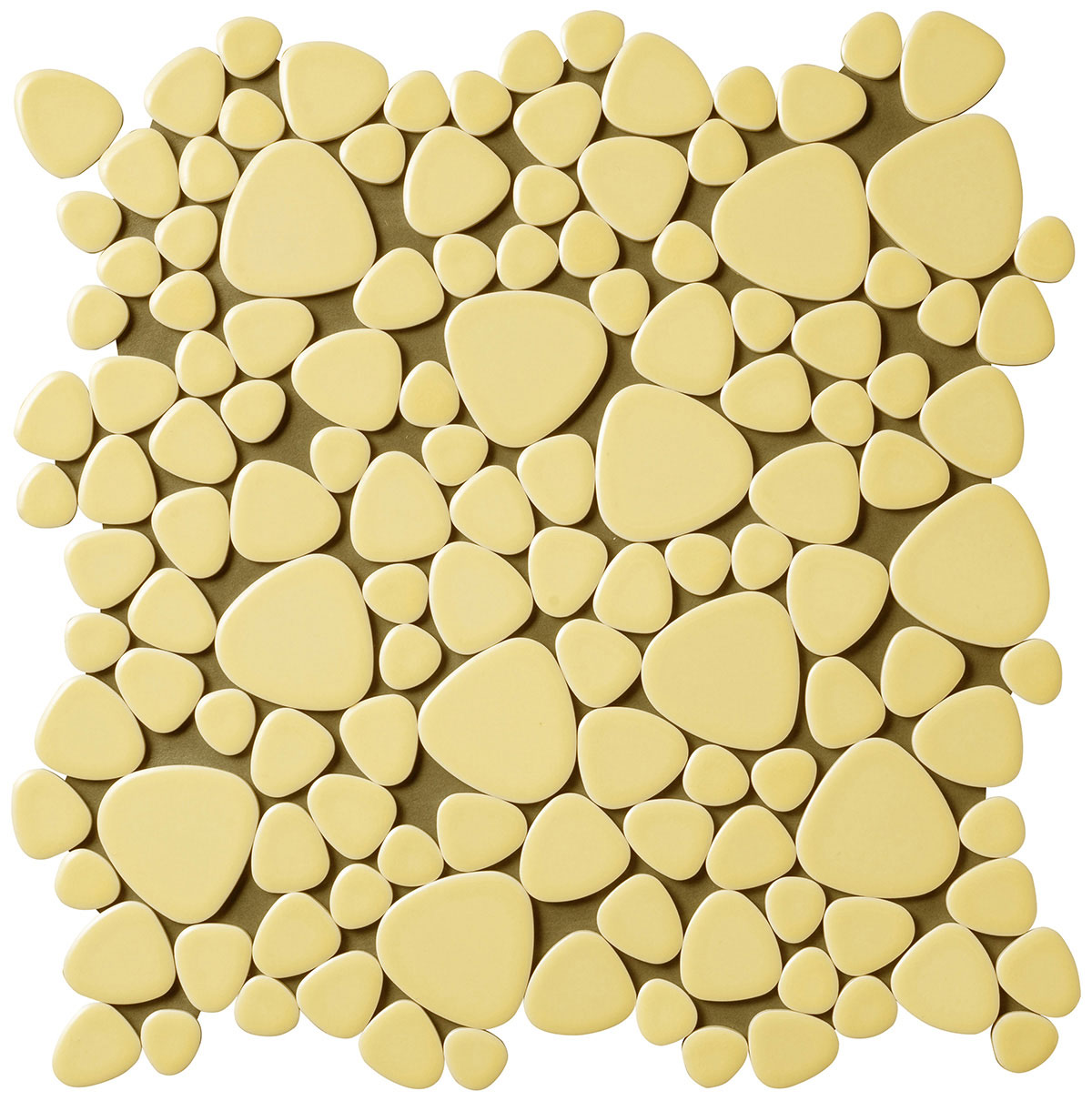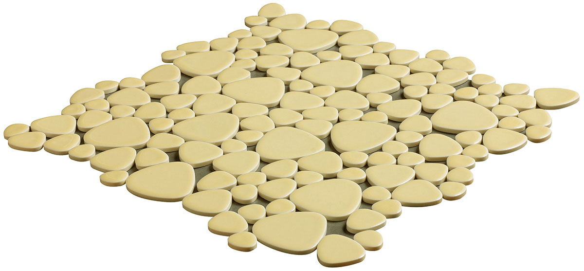 - モザイクタイル ユレルシズク(玉石) ミックスサイズ 色:クリームイエロー