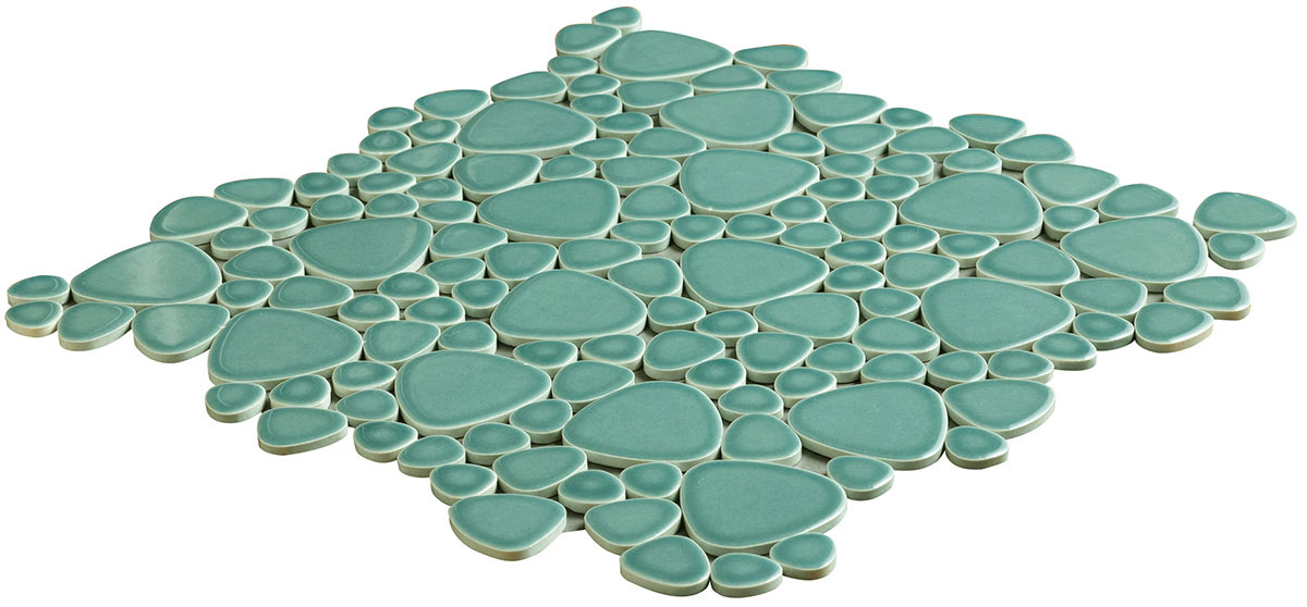 - モザイクタイル ユレルシズク(玉石) ミックスサイズ 色:あさぎいろ