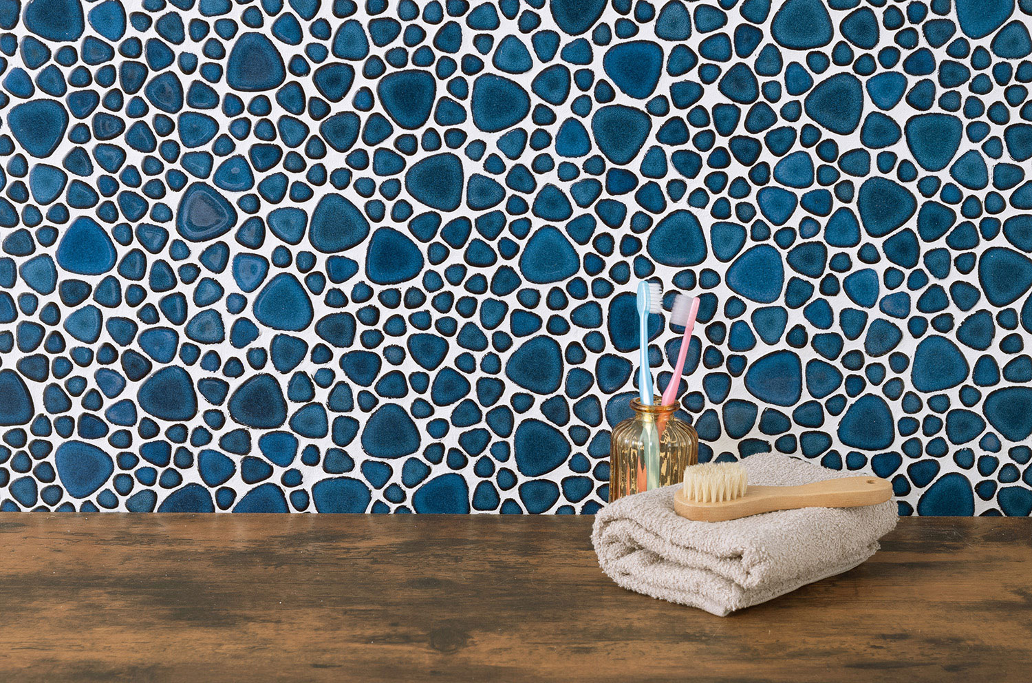 レトロな雰囲気と現代的なデザインを融合させて上品で可愛らしい玉石モザイクタイル。滑らかな丸みが、空間に温かみを添えてます。 ■注意事項■ 生産ロットにより色が異なる場合があります。
