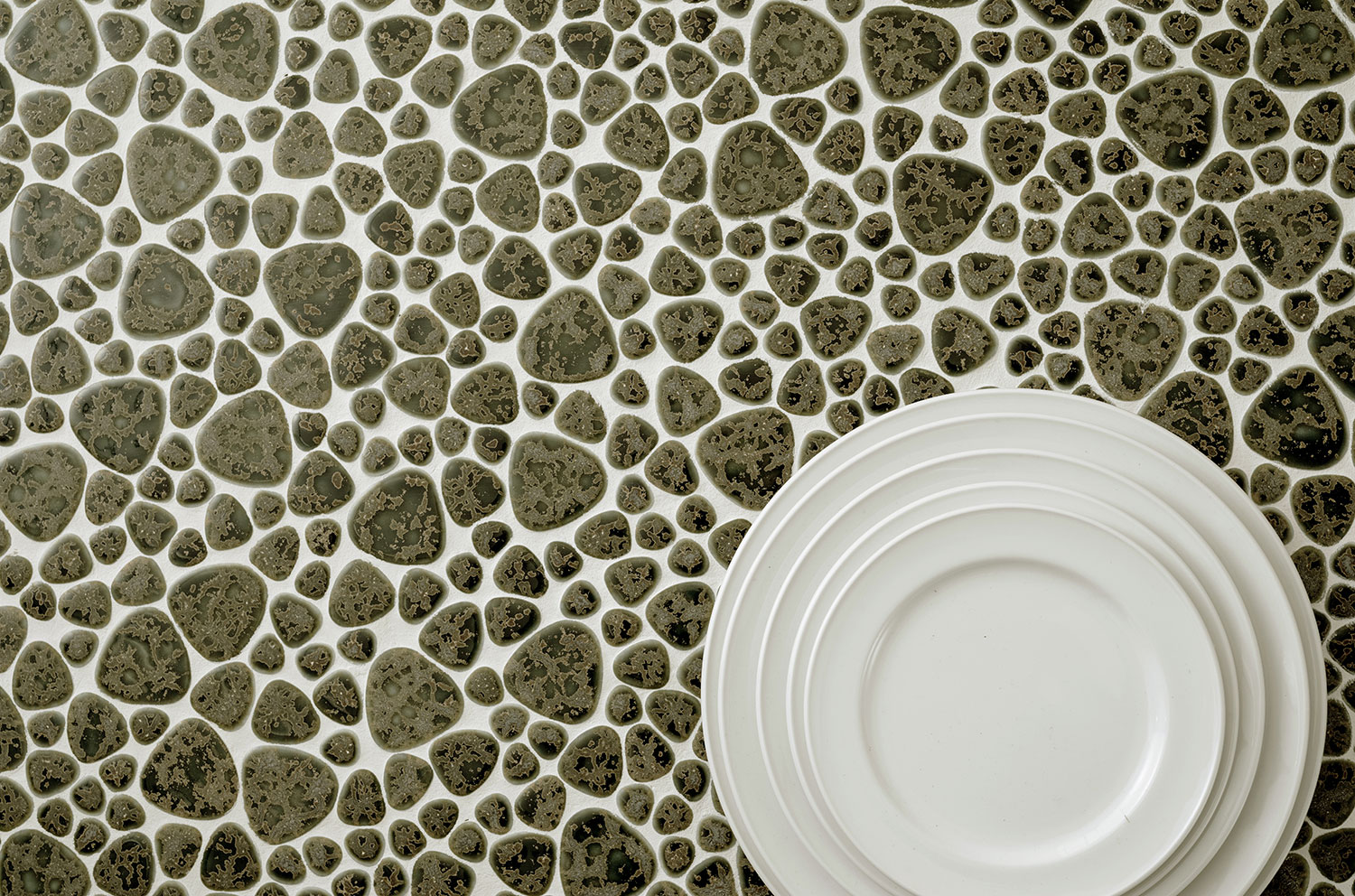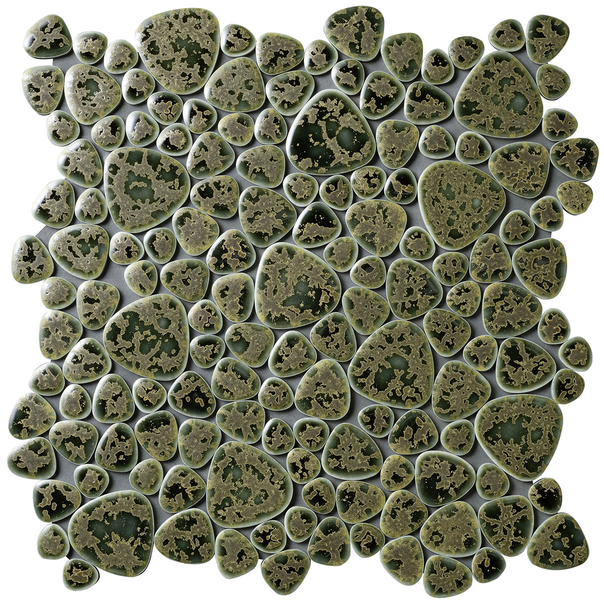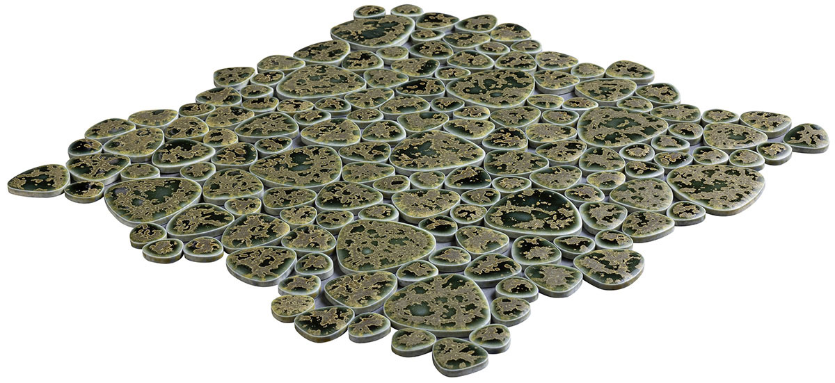 - モザイクタイル ユレルシズク(玉石) ミックスサイズ 色:窯変グリーン