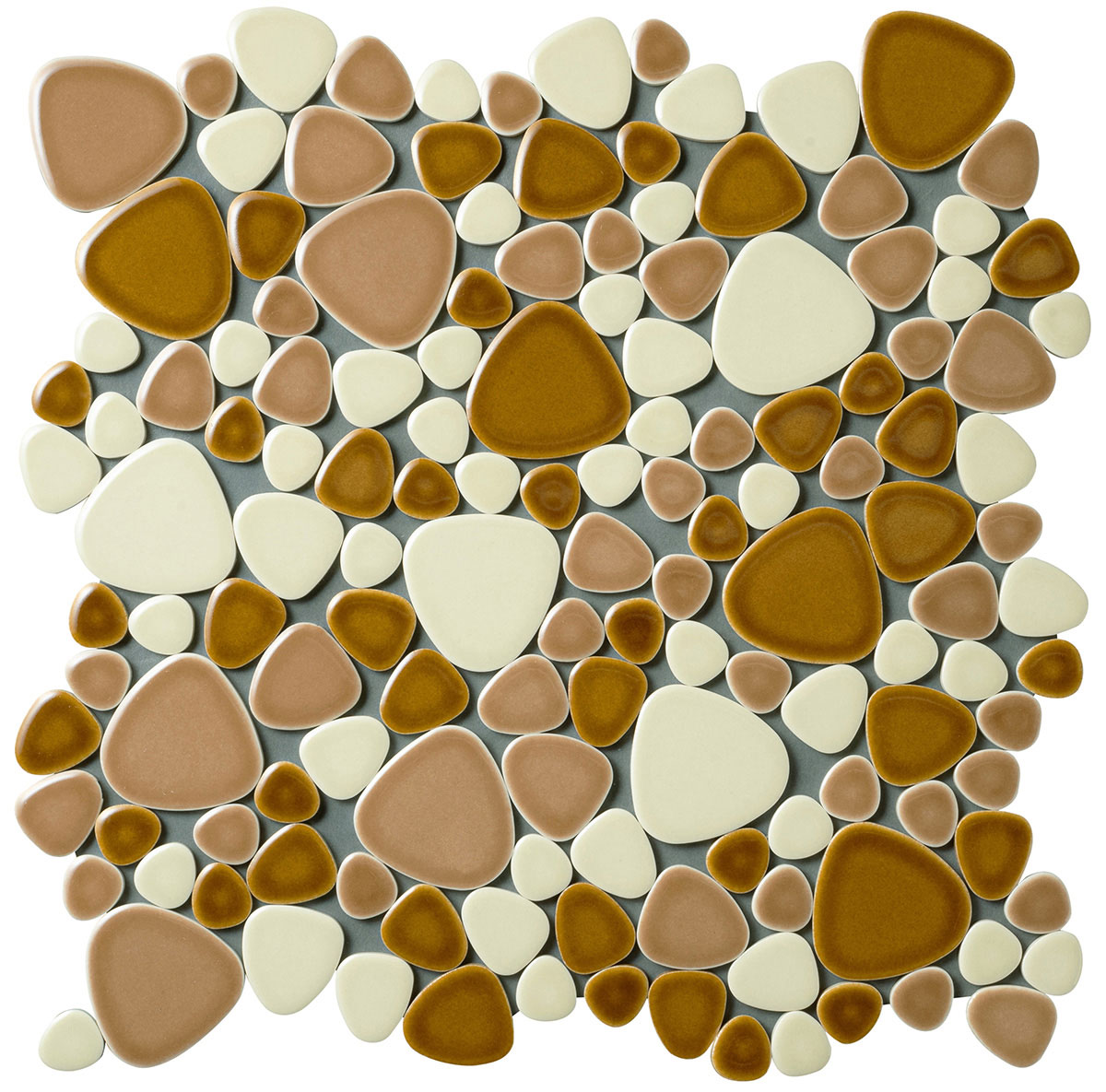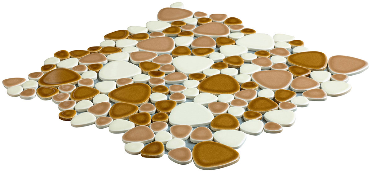 - モザイクタイル ユレルシズク(玉石) ミックスサイズ 色:きゃらめる