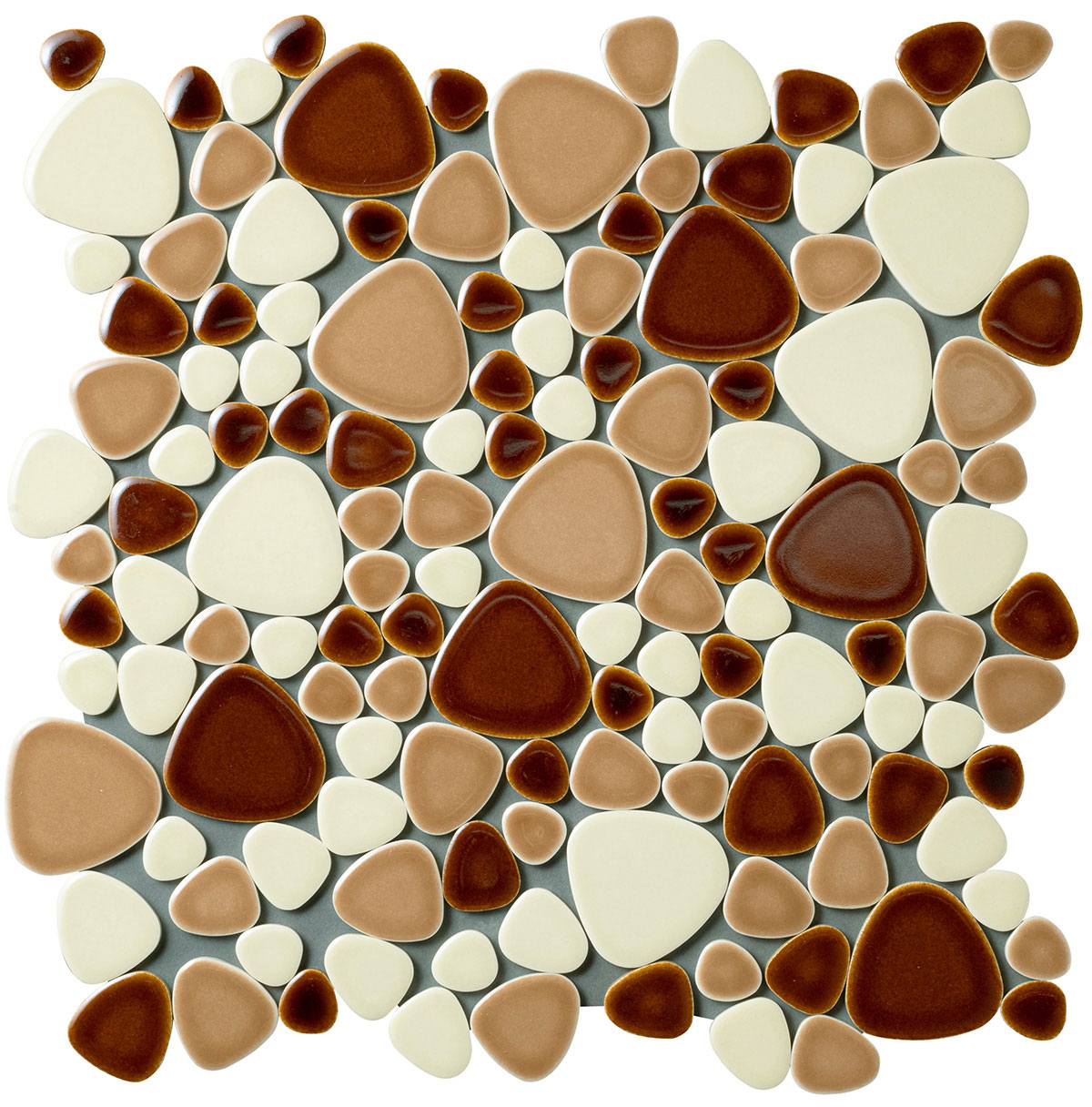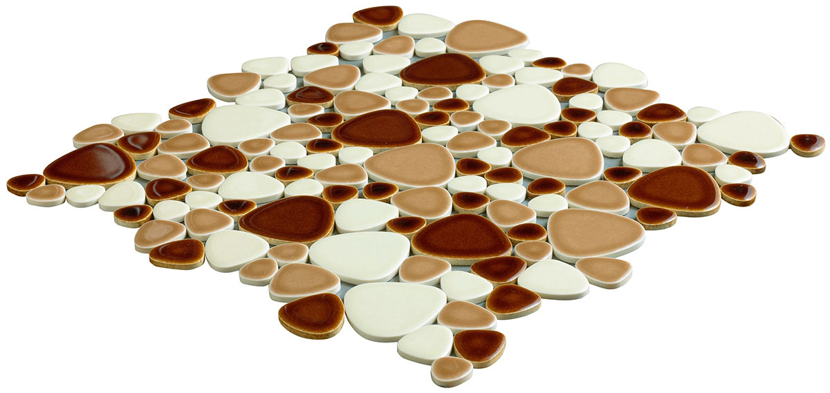 - モザイクタイル ユレルシズク(玉石) ミックスサイズ 色:みるくこーひー