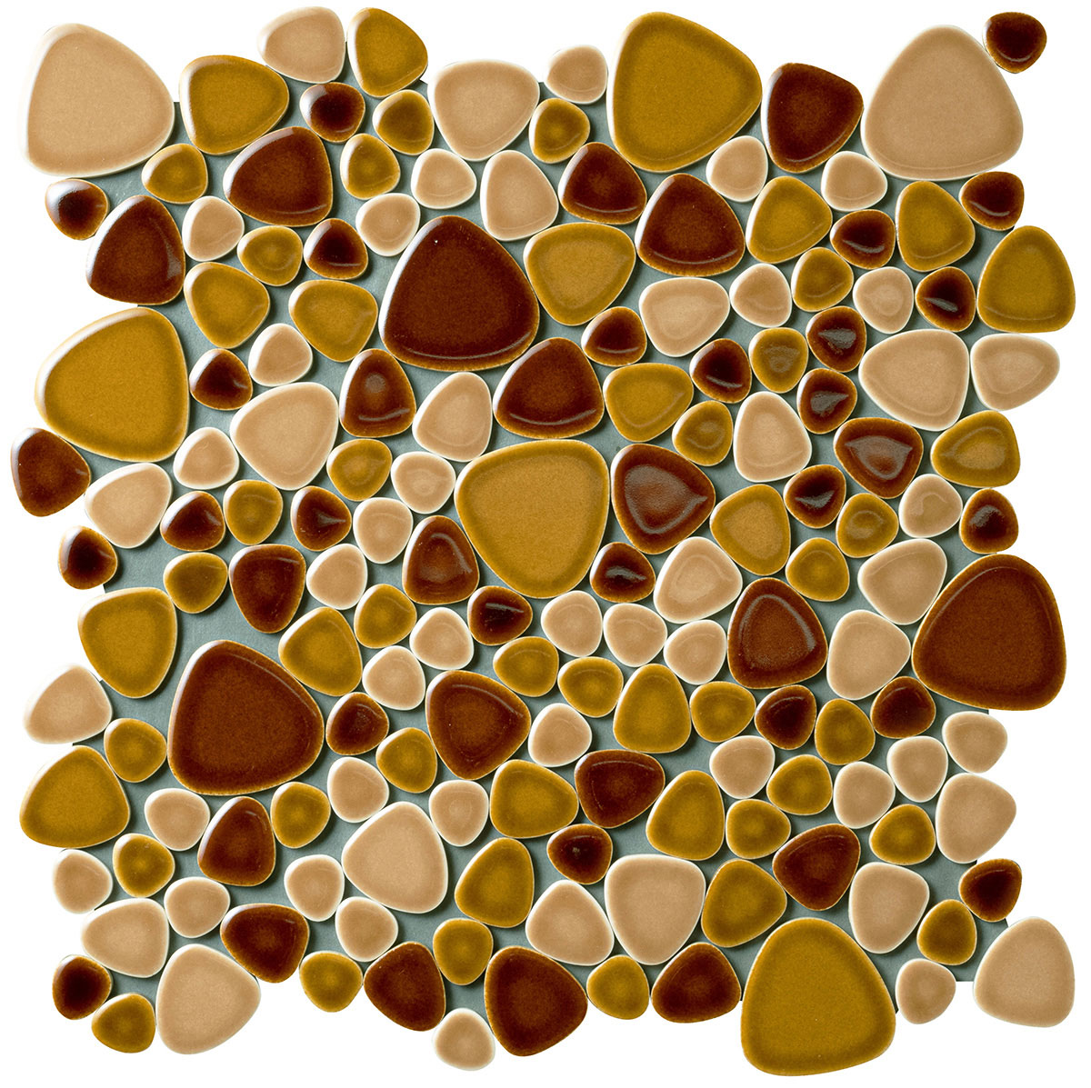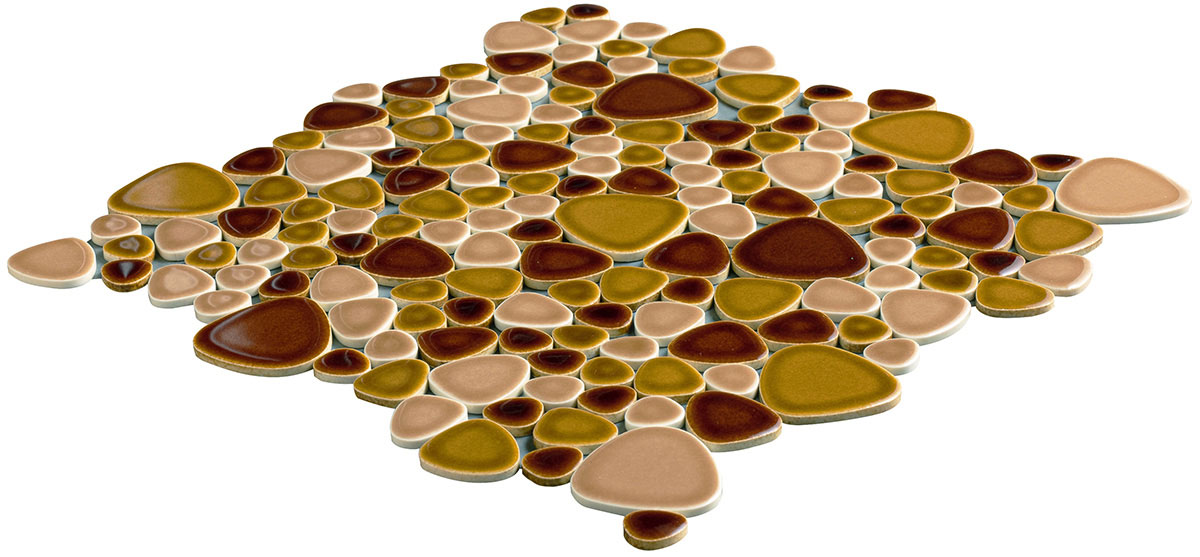 - モザイクタイル ユレルシズク(玉石) ミックスサイズ 色:かすてら